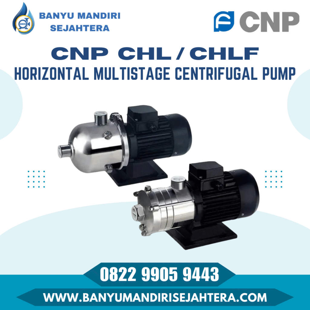2. CNP CHL / CHLF (Horizontal Multistage Centrifugal Pump) Untuk kebutuhan transfer cairan dengan tekanan menengah, tipe pompa CNP CHL adalah solusinya. Dengan desain horizontal yang kompak, pompa ini sering digunakan untuk sistem sirkulasi air, pendingin mesin industri, dan pengairan skala menengah.