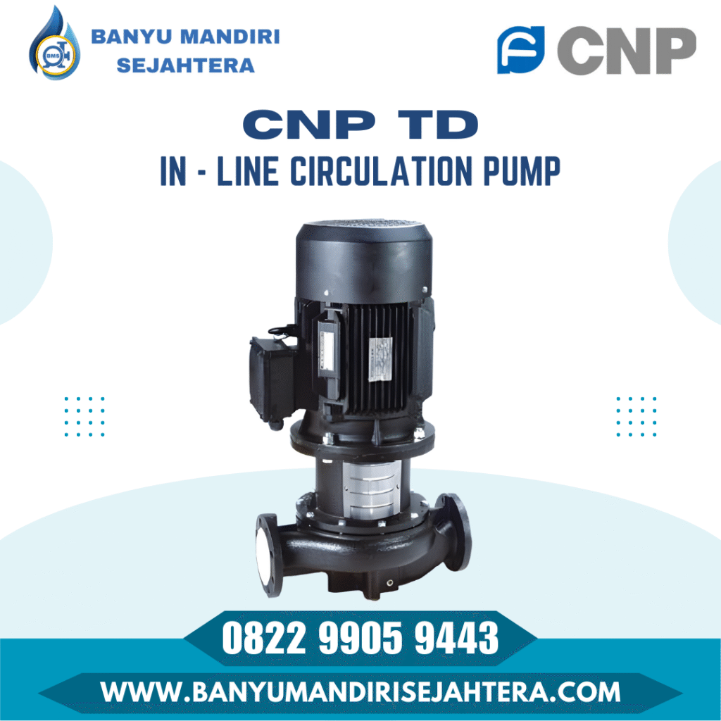 5. CNP TD (In-line Circulation Pump) Jika Anda mencari pompa untuk sistem sirkulasi air panas atau dingin di gedung (HVAC), CNP tipe TD adalah pilihan yang efisien untuk pemasangan langsung pada pipa (in-line).