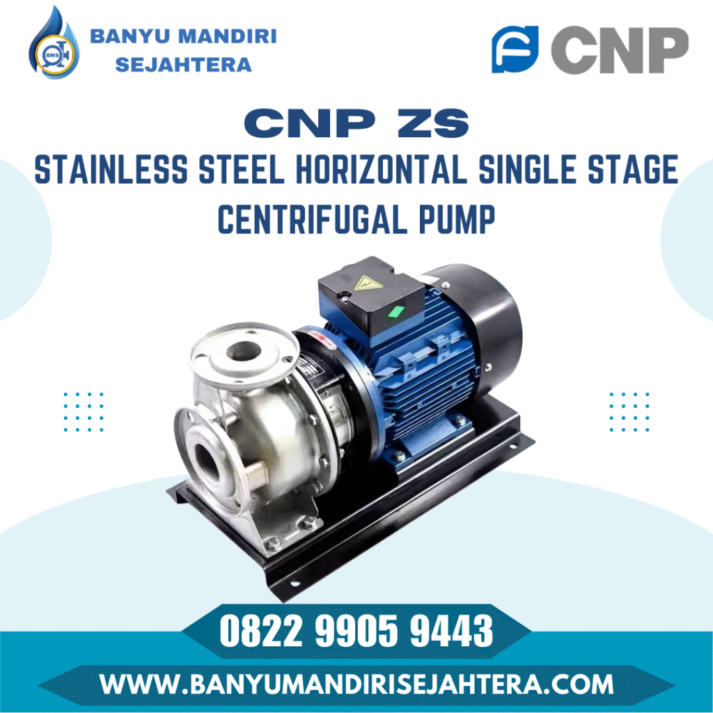 4. CNP SZ (Stainless Steel Horizontal Multistage Pump) Mirip dengan seri CHL, namun CNP tipe SZ lebih difokuskan pada ketahanan terhadap cairan kimia ringan dan air murni. Sangat cocok untuk industri farmasi dan makanan karena standar kebersihannya.