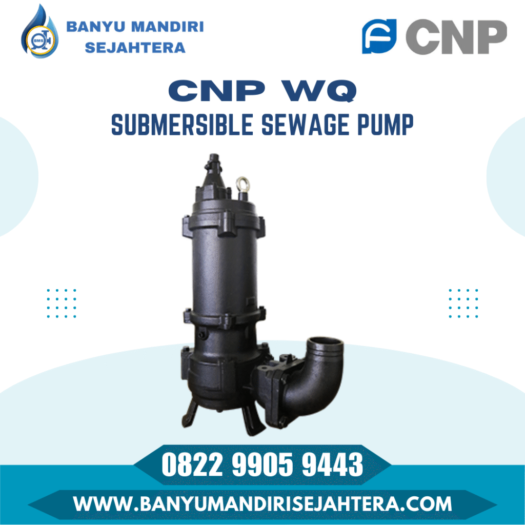 3. CNP WQ (Submersible Sewage Pump) Bagi Anda yang menangani limbah, CNP tipe WQ adalah pompa celup air kotor yang sangat tangguh. Tipe ini mampu menangani partikel padat dan air limbah industri (sewage) dengan efisiensi tinggi, menjadikannya standar dalam proyek IPAL (Instalasi Pengolahan Air Limbah).