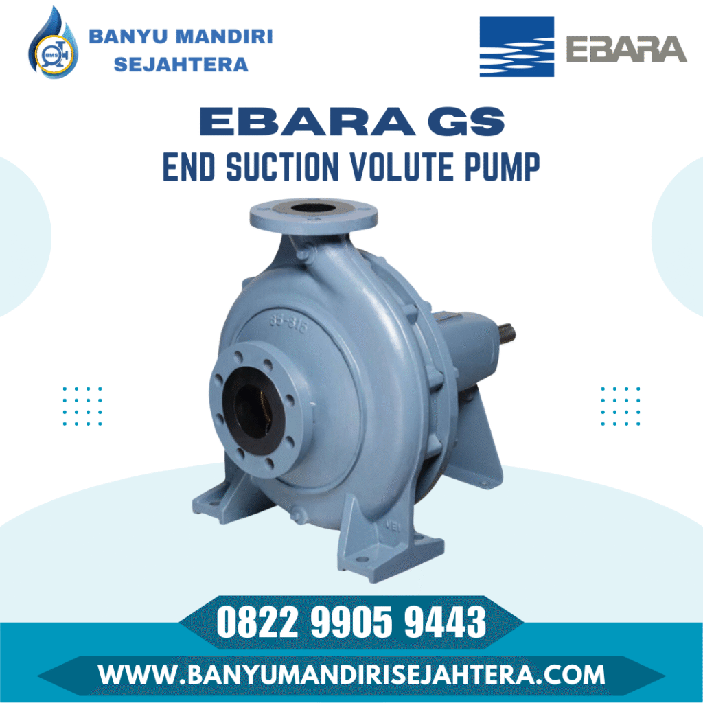 Ebara FSA (End Suction Volute Pump) Ini adalah tipe pompa sentrifugal Ebara yang paling ikonik. Ebara FSA sering digunakan untuk transfer air bersih kapasitas besar dan sirkulasi industri. Fitur back pull out memudahkan teknisi dalam melakukan perawatan tanpa melepas pipa.